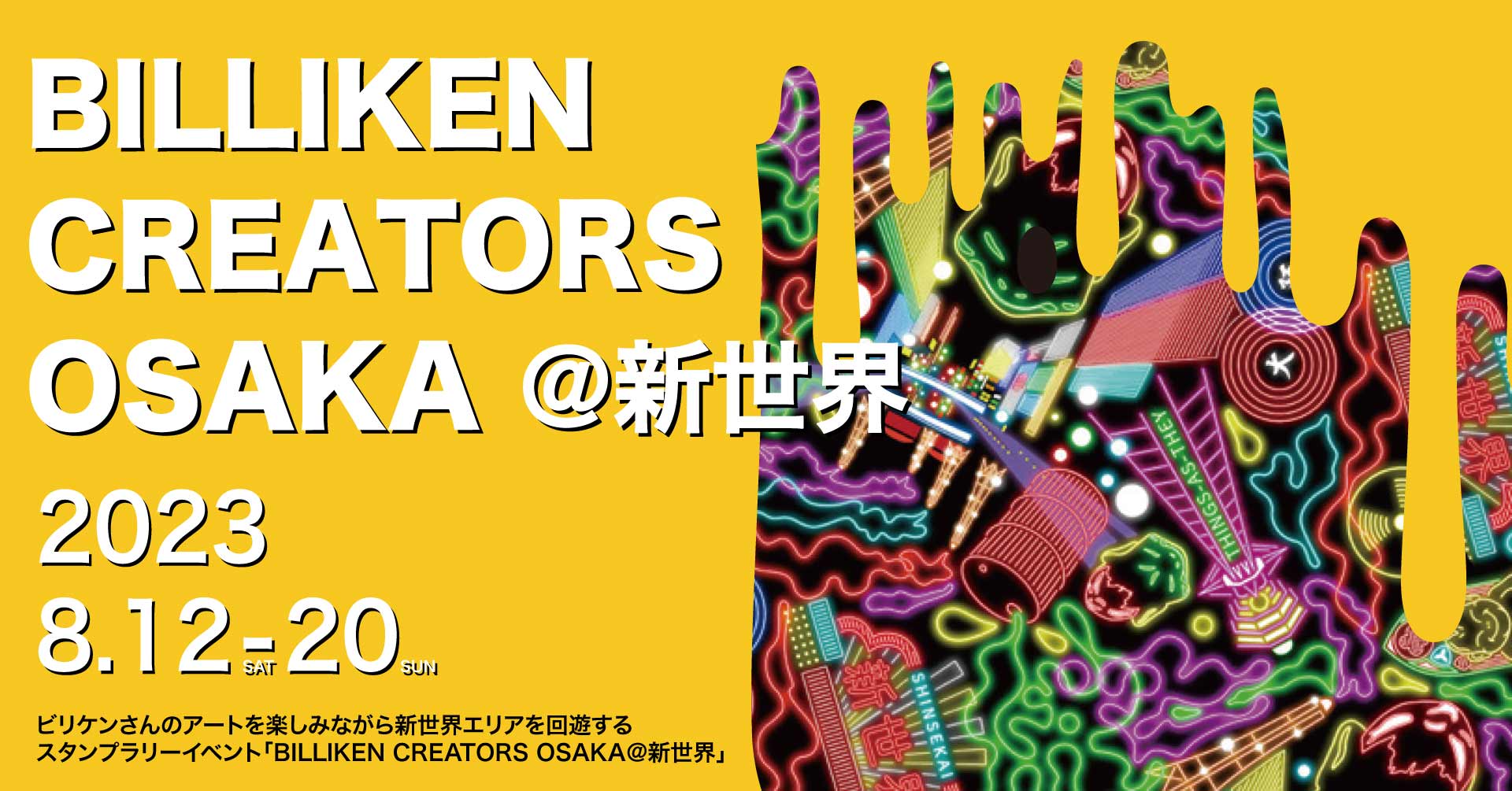 ビリケンさんに魅せられたクリエイターたちが集まり、”ビリケンさんをアートに” ”オーサカを元気に”をテーマに作品を発表する、大阪発のPOP CULTUREイベントです。2025年の大阪・関西万博に向けて、ビリケンさんが大阪発のポップカルチャーアイコン、ラッキーアイコンとして、次の100年も大阪、日本そして世界の人たちに愛されることを目指しています。